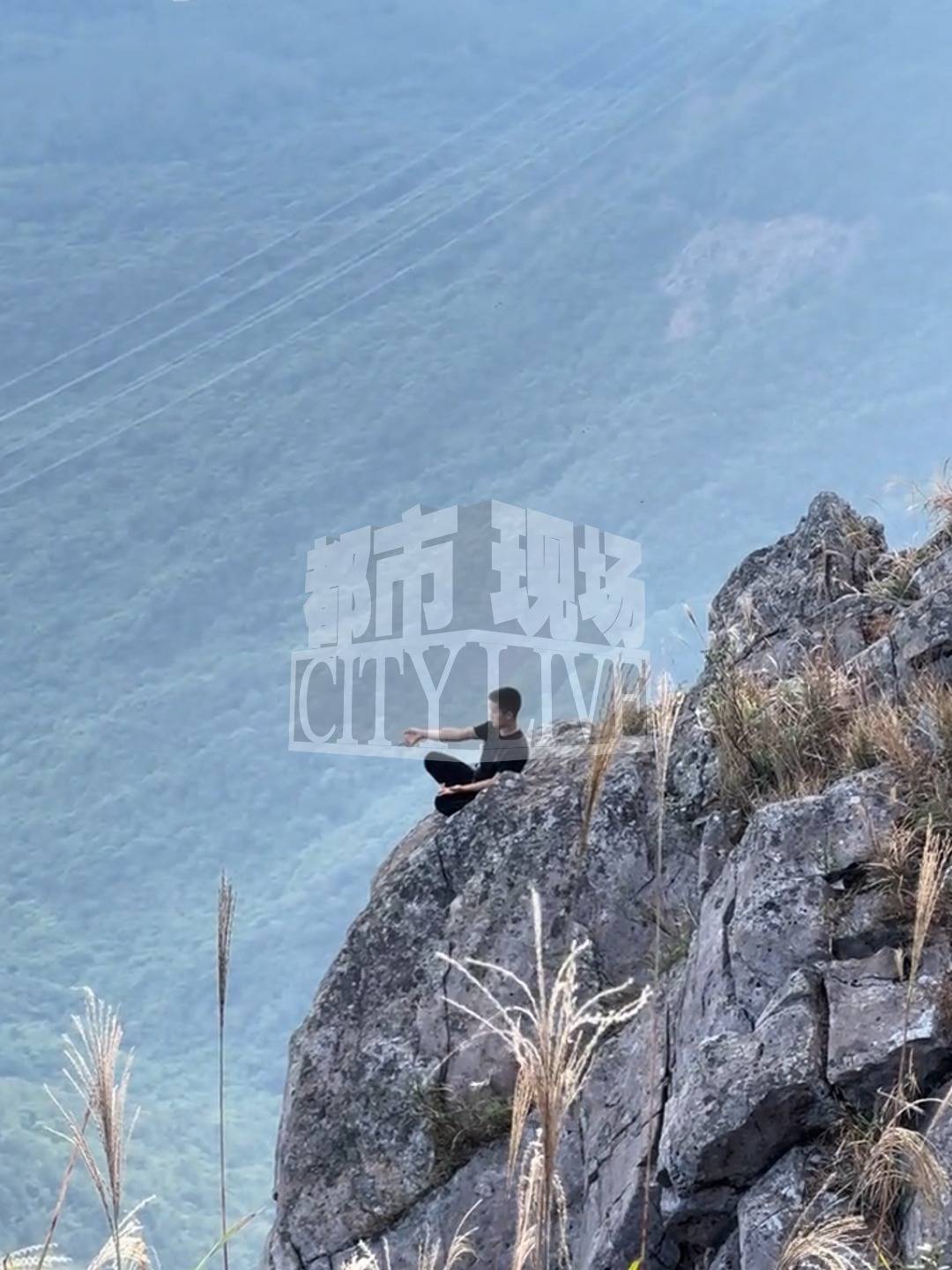 11月9日,有网友在互联网平台晒出视频,称广东省东莞市银瓶山森林公园内有男子疑似在悬崖边“修炼”。